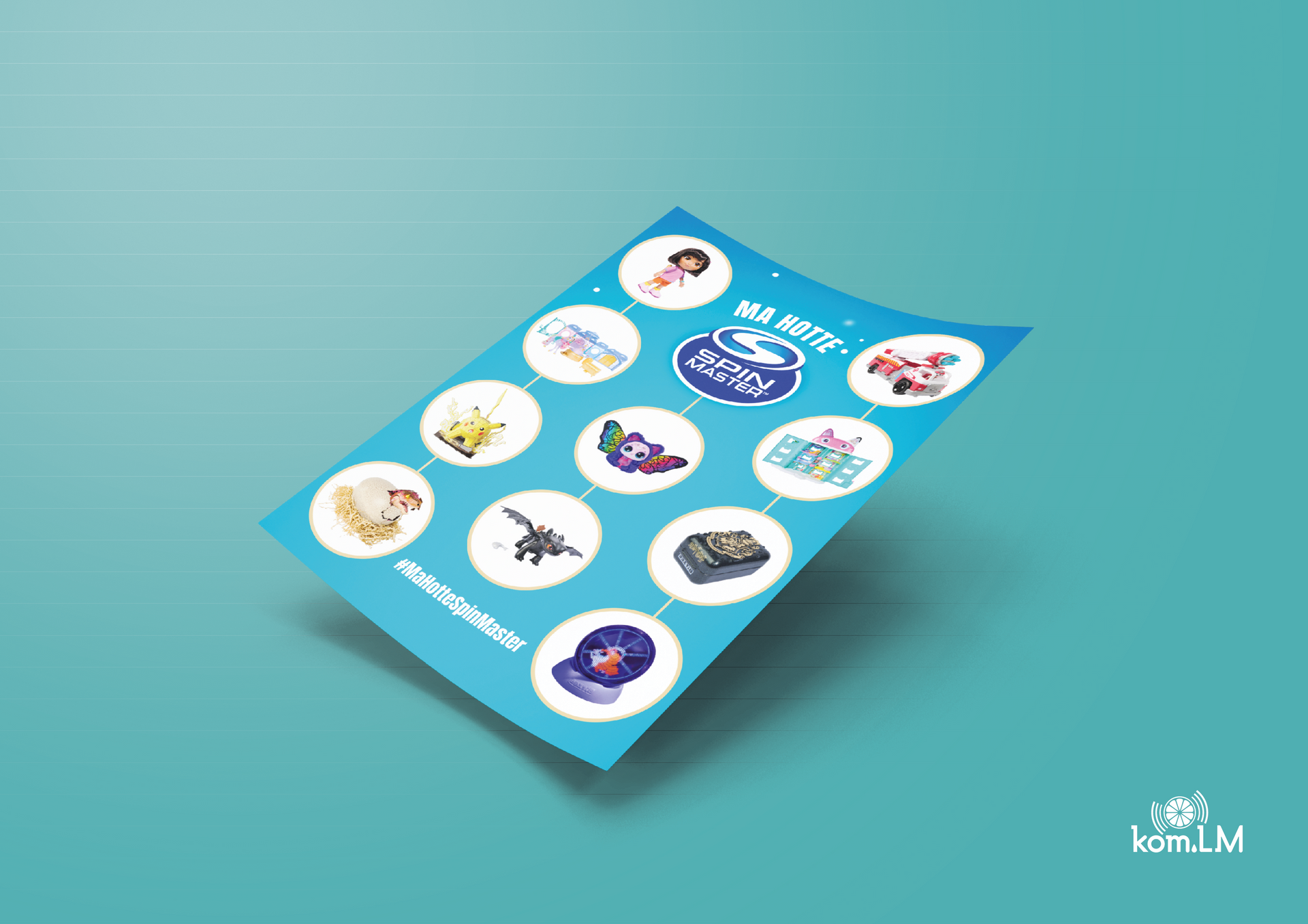 Le stand de présentation de Spin Master a été conçu pour faire écho au dossier de presse, en reprenant les mêmes univers, les mêmes visuels et les mêmes codes graphiques. Du croquis initial au stand final, chaque détail a été pensé pour plonger les visiteurs dans le même univers visuel que celui du dossier de presse.